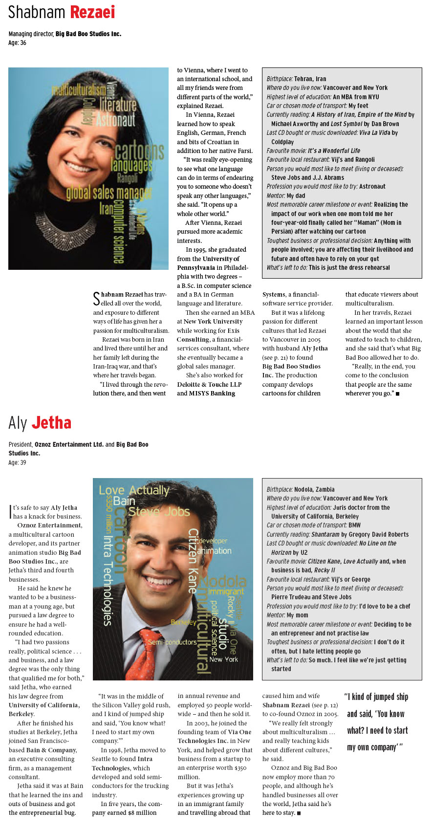 Aly Jetha & Shabnam Rezaei are selected as Vancouver's Top 40 Under 40 Business Executives by BIV
